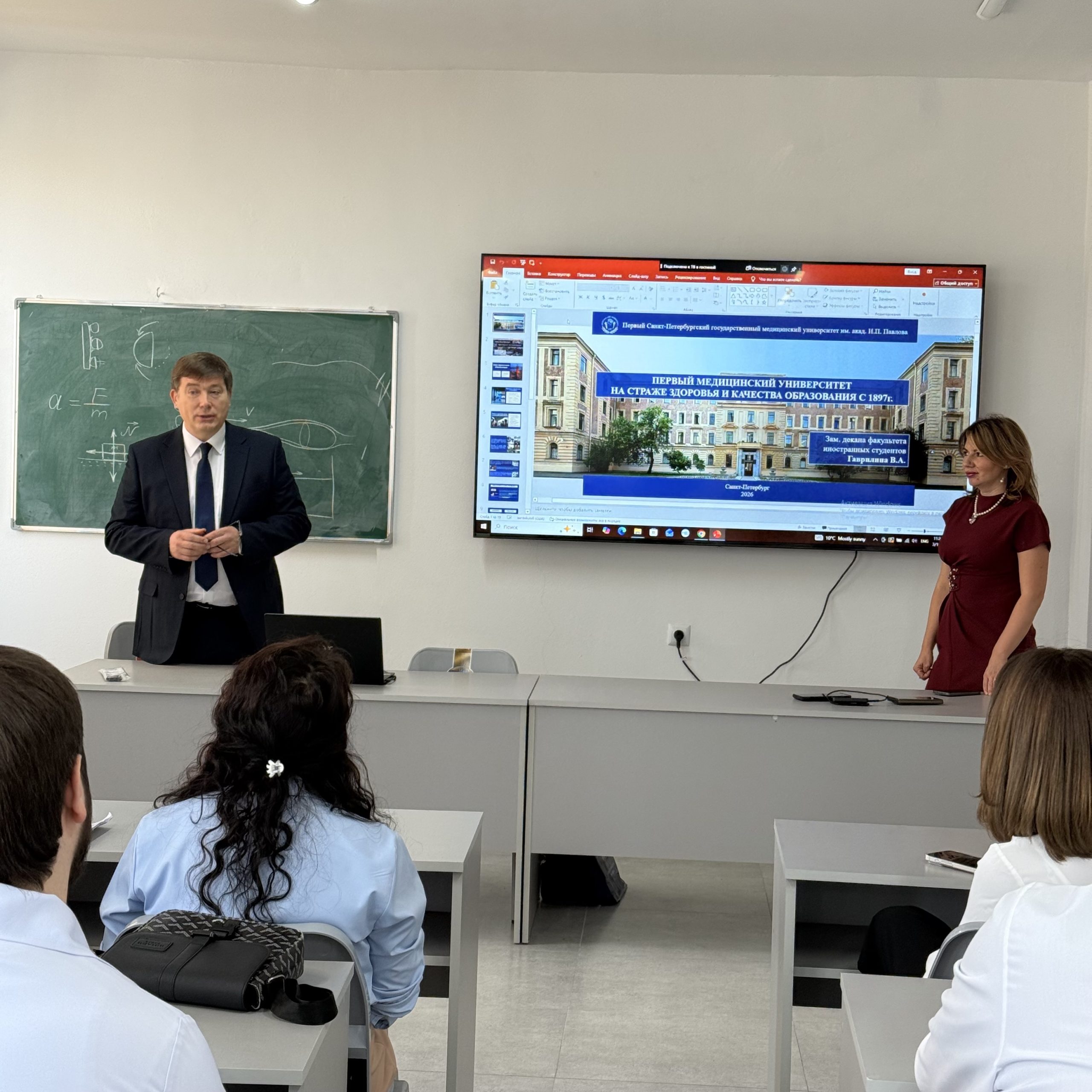 պատվիրակությանը՝ ի դեմս միջազգային կապերի գծով պրոռեկտոր Ս. Ա. Կարպիշենկոյի և բուժական ֆակուլտետի փոխդեկան Վ. Ա. Գավրիլինայի։ Հյուրերին ընդունեց ինստիտուտի ռեկտոր Լ. Վ. Անդրիասյանը։ Այնուհետև հյուրերը դեկանների և ուսումնական մասի ղեկավարի ուղեկցությամբ շրջեցին ինստիտուտում, ծանոթացան ուսումնական պայմաններին, այցելեցին սիմուլյացիոն կենտրոններ, ֆանտոմային կաբինետներ և անատոմիայի թանգարան։ Հանդիպում կայացավ նաև ուսանողների և դասախոսների հետ, որի ընթացքում հյուրերը ներկայացրին իրենց համալսարանը, ուսանողների փոխանակման ծրագրերը և հետդիպլոմային կրթության հնարավորությունները։ Կողմերը նաև կարևորեցին հետագա համագործակցությունը ինչպես ուսանողական, այնպես էլ դասախոսական համակազմի համար: Այս նախաձեռնություններին աջակցություն ցուցաբերելու պատրաստակամություն հայտնեց նաև «Ռուսական տուն»-ը Ռուսաստանի գիտության և մշակույթի կենտրոնը Երևանում։